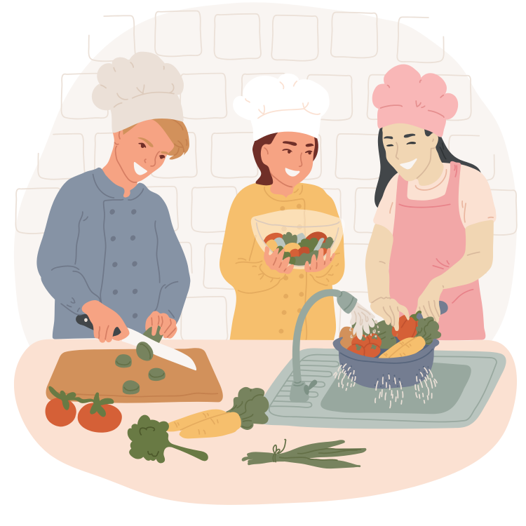 栄養バランスを考えた献立を自分たちで立て、調理し、実際に味わうことで、栄養素の働きを体で理解します。「この食材はこんな味なんだ」「自分で作った料理はおいしい!」という感動は、健康的な食生活を続けるためのモチベーションになります。