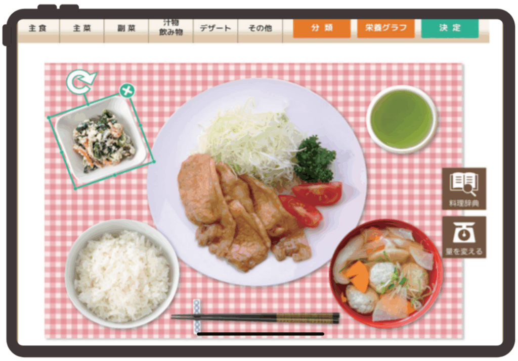 自分で考えた献立を使い栄養バランスを学ぶことができます