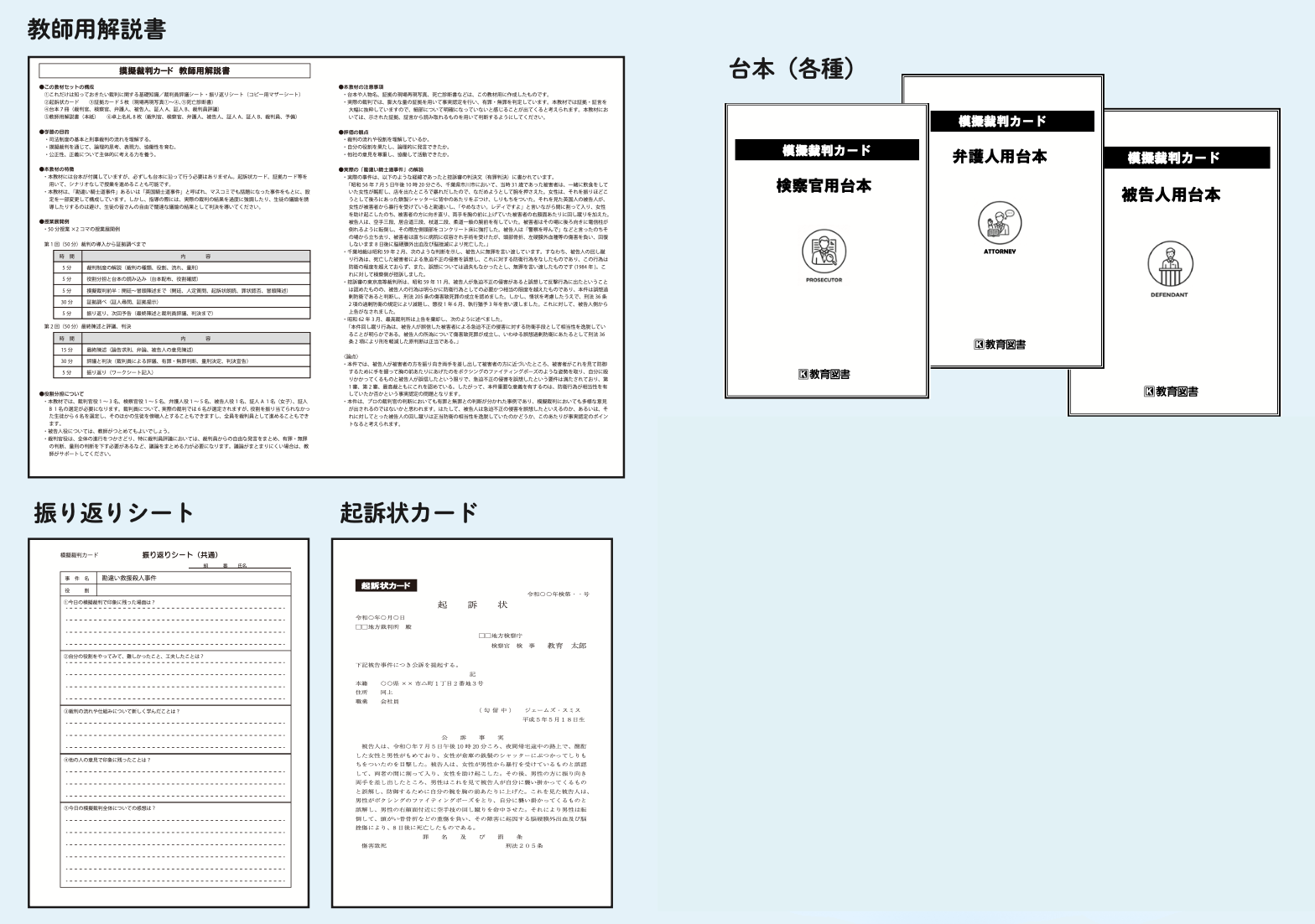 ・台本(検察官用、裁判官用、裁判員評議裁判官用、証人 A 用、証人 B 用、被告人用、弁護人用)