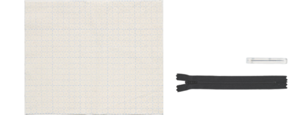 ファスナーつけを自分で行う教材です。印刷された方眼の線をなぞるように縫えば、きれいに縫うことができます。方眼は水洗いで消すことができます。