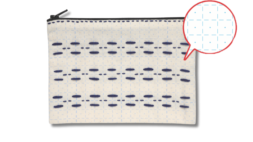 水洗いで消える方眼プリントが縫い目のガイドになり、図案はオリジナルで作成が可能です。