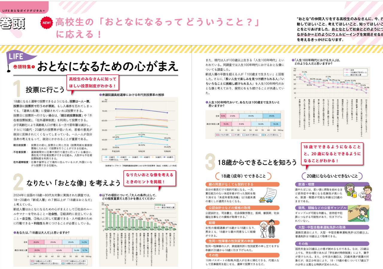 紙面には、「おとな」になるために知っておきたい情報が満載です。