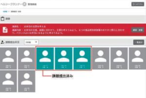 ●教師用管理画面から「課題」を設定し、オンラインで課題の提出、評価ができます。