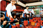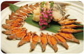 若狭湾で獲れた連小鯛(レンコダイ、別称黄鯛)を三枚におろして薄塩し,酢で漬け込んで杉樽に笹葉とともに入れて熟成させる。