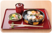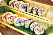 切り口の絵柄をデザインするのが特徴の太巻きずしである。様々な絵柄が工夫されている。