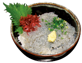沿岸で獲れたしらす(主にカタクチイワシの稚魚)を釜揚げにして丼にする。