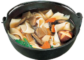 稲作が終わってから作付ける小麦を使ったもので,幅広い麺状にしたものを根菜類と一緒に煮込んだものである。