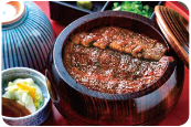 お櫃(ひつ)に飯を入れ,その上に,かば焼きにしたうなぎを小さく切り分けて載せたもの。櫃で、飯とかば焼きを混ぜる(まぶす)ことから「ひつまぶし」と称する。