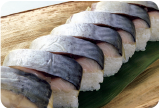若狭湾で獲れた鯖を塩漬けにして京都まで運んだものを酢締めにし,飯の上に載せて棒状にして竹の皮で包む。この鯖を運んだ道は鯖街道と呼ばれている。