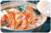 鳥取県の日本海で獲れるズワイガニを使った鍋料理で、だし汁に、野菜や豆腐と一緒に殻のついたままカニを入れる。冬が旬。