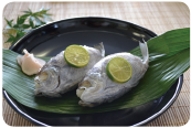 ぼうぜとはいぼだいのことで,頭を残したまま背開きにして酢じめにし,1尾をそのまま酢飯にのせて押し寿司にする。特産のすだちを添える。