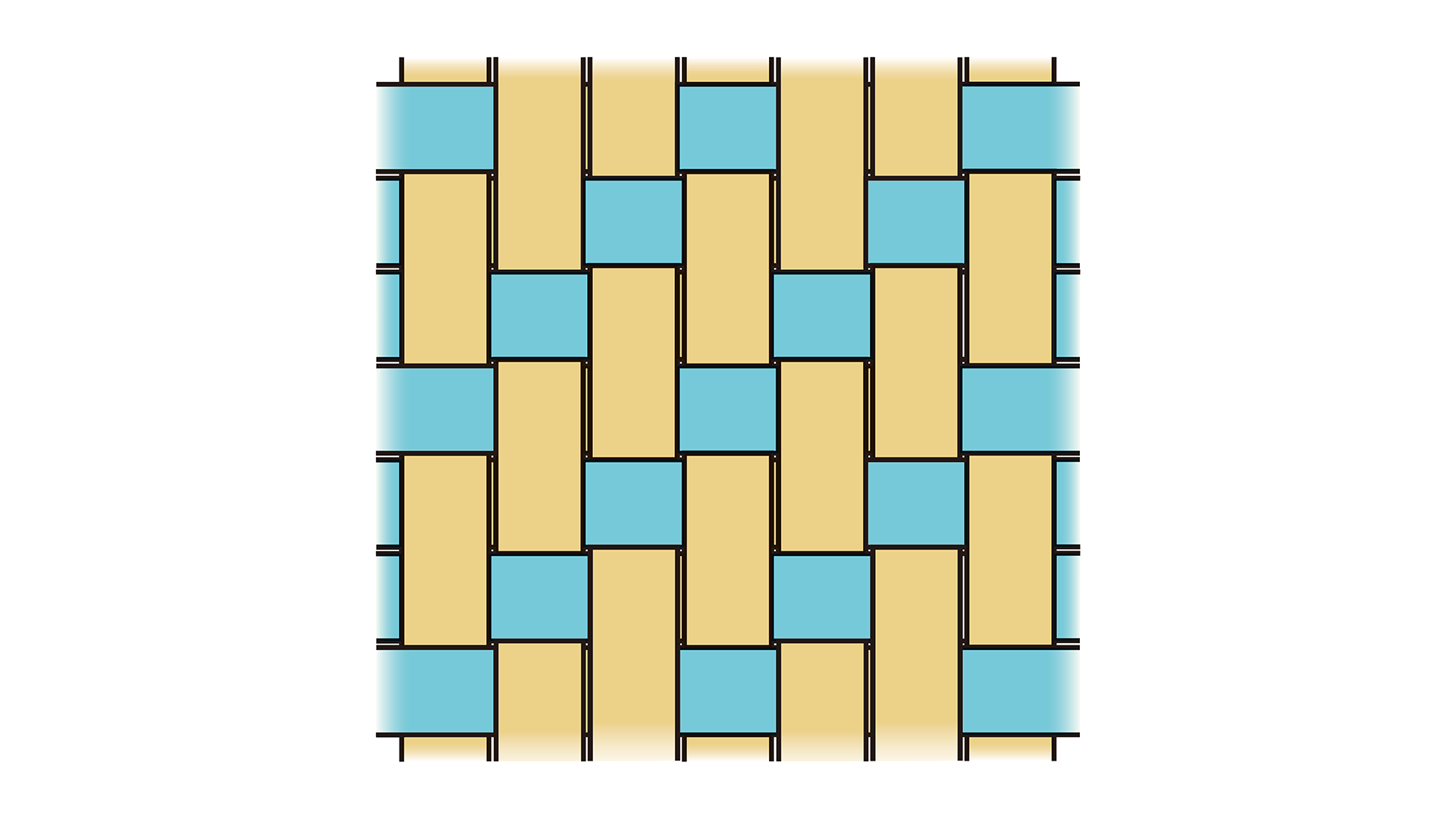 ①斜文織は、2本以上のよこ糸の上にたて糸を浮かすか沈めるかさせて交錯させたもので、斜めの方向に「うね」があらわれる。②朱子織は、たて糸とよこ糸の交点をできるだけ話して交錯させたもの。③平織は、たて糸とよこ糸を互いに上下に組み合わせて交錯させたもの。