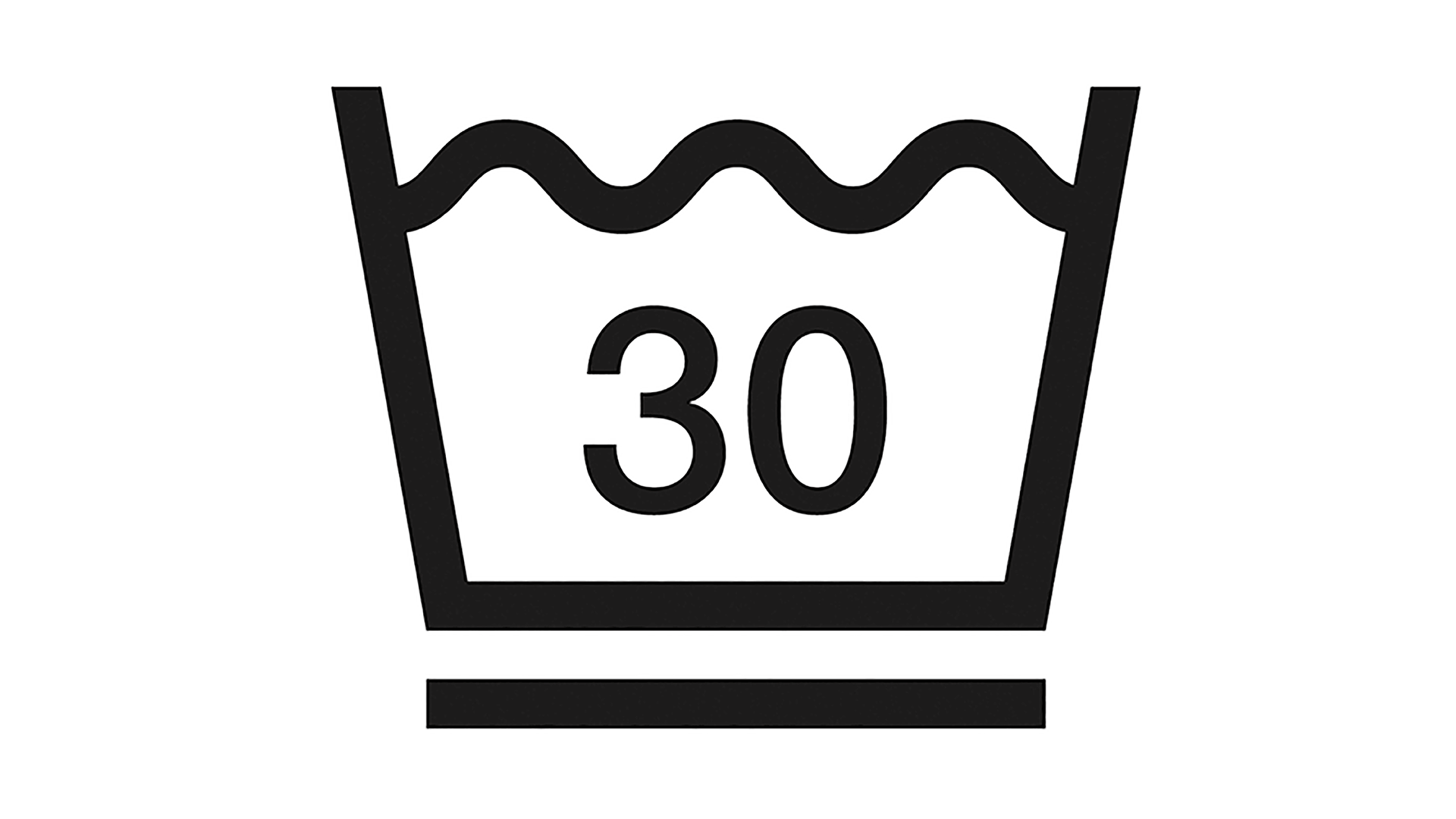 設問文の表示は、取扱い表示(JIS L0001)の「家庭洗濯」の記号である。中の「30」という数字は、洗濯液の上限温度を表す。下の横線は、洗濯時の「処理の弱さ」を表し、1本の場合は、通常より「弱い」洗い方をする必要がある。