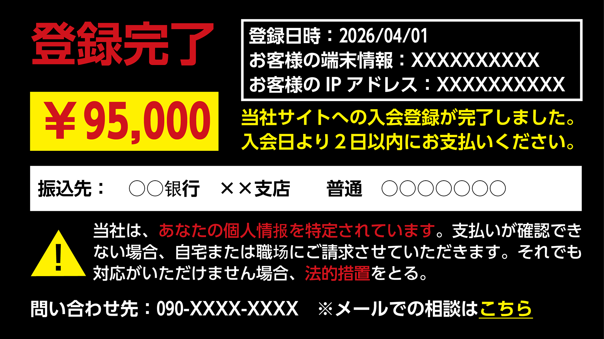 消費者が自分の意思で有料サイトに登録した場合でなければ、このような請求に応じる必要はない。画面で指定された電話連絡先、メール相談窓口に連絡すると、個人情報を抜かれる可能性がある。こういった画面が出た場合、クリックしないよう注意しながら、画面を閉じたり、スマホを強制終了したりするとよい。消費生活センターなどに相談するのも有効である。