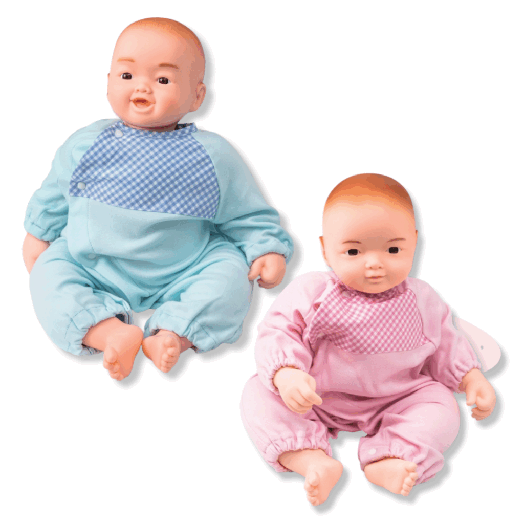 沐浴実習やおむつ交換、臍帯着脱など多目的な用途に使用できる万能型新生児モデルです。