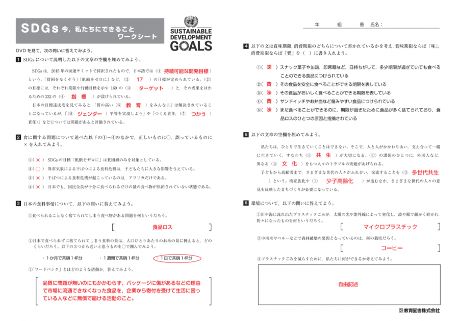 付属のワークシート。解答例入り
