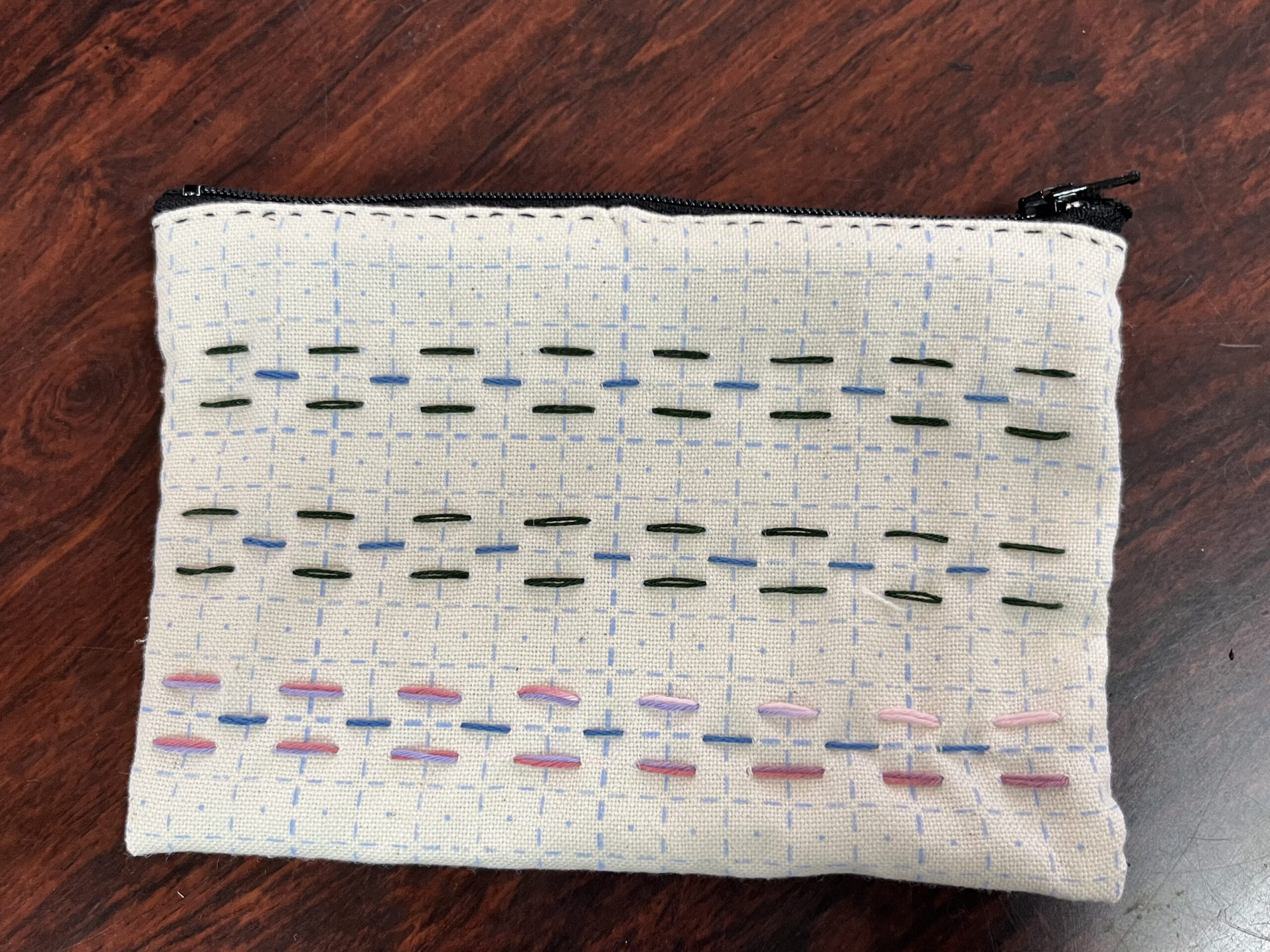 - 刺し子とポーチづくりを通して基礎縫いの技法を確認する。