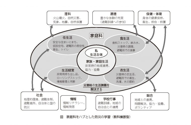 ○p.168図 家庭科をハブとした防災の学習(教科横断型)