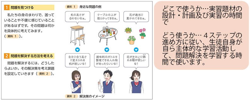 「Web版 Q&A」シリーズでは、他教科とは異なった視点が必要な、学習指導や学習評価及び授業運営などの疑問や問題などを、できるだけ分かりやすく、具体的に示すようにしてあります。従って、教科書の具体例は、教育図書の教科書の例で示してありますので、使用する教科書に合わせ、使い方のポイントをつかみ、生徒が技術を学ぶ楽しさや面白さを感じるようにしてはいかがでしょうか?