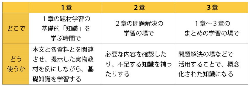 ○1章で全ての内容を学習するのでなく、2章の問題解決を学習する場で必要な「知識」を学習する方法もあります。